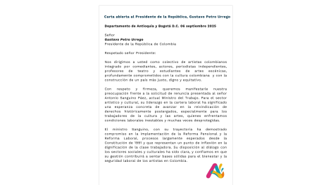 Un colectivo de artistas, comediantes, actores, periodistas independientes, gestores culturales y estudiantes de artes escénicas dirigió una carta abierta al presidente...