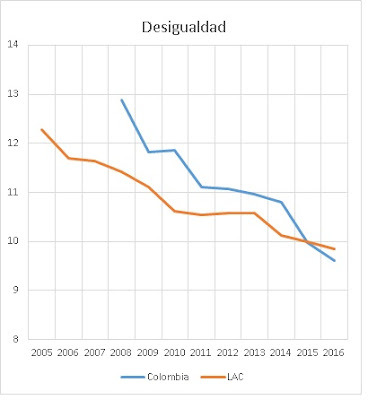 Esta entrada analiza cuatro variables: la pobreza, la desigualdad, la fecundidad adolescente y la cobertura de educación terciaria. En todas Colombia progresó más rápido que en la región como un todo.