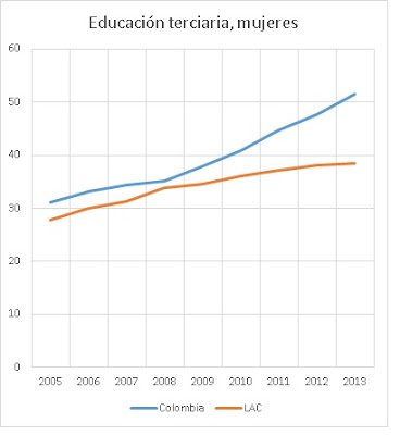 Esta entrada analiza cuatro variables: la pobreza, la desigualdad, la fecundidad adolescente y la cobertura de educación terciaria. En todas Colombia progresó más rápido que en la región como un todo.