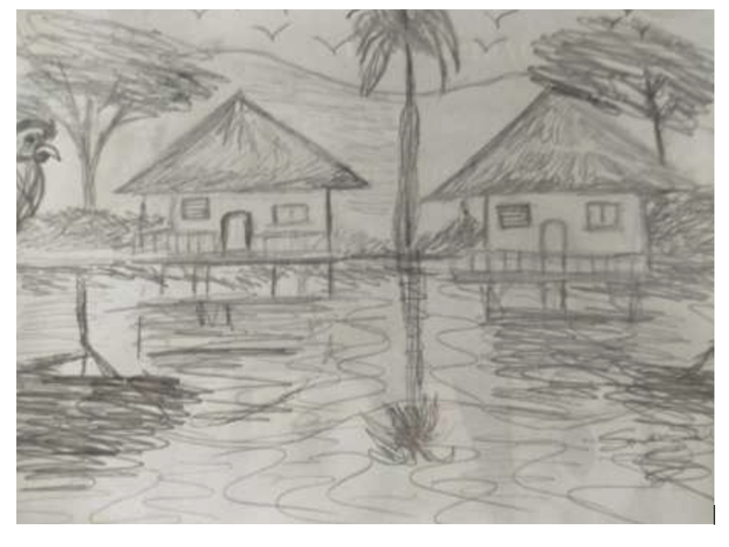 «Cohoba en Doña Juana» (2025), dibujo a lápiz de Sarai Soler Jordán (Cuba, p. 54).