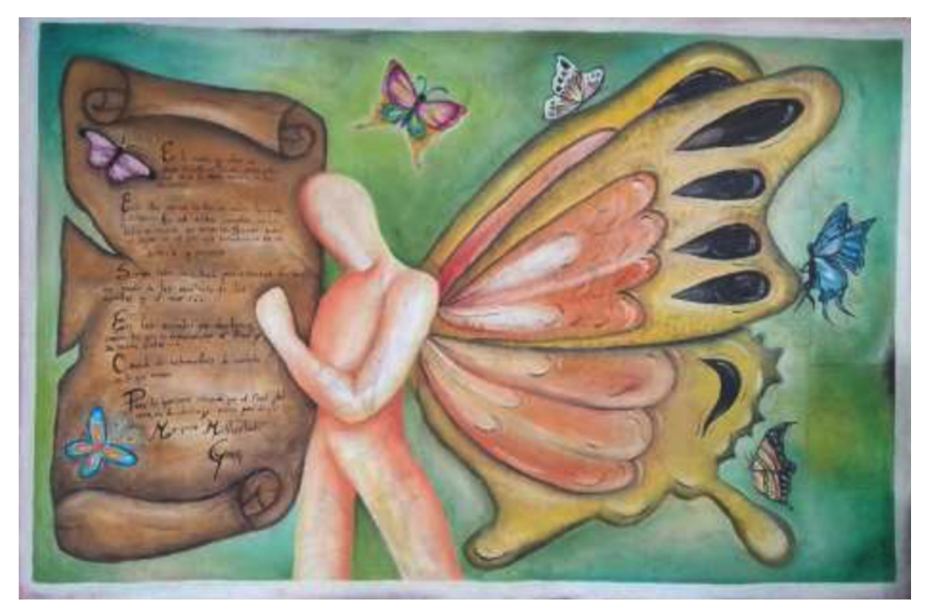 «En la cercanía y la distancia… para ti Gissel» (2009), óleo sobre fibracel-técnica peraltiana de Goretty Nurelmy Farfán García (Chetumal Quintana Roo, México, p. 94).
