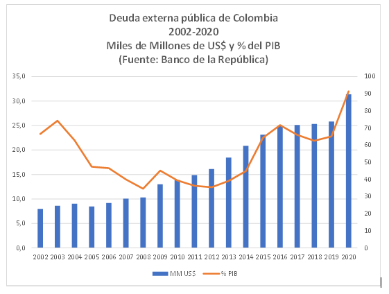 No se puede ocultar el hecho de que el País estaba mal parado fiscalmente cuando sobrevino la pandemia, como consecuencia de las acciones de los gobiernos Santos y sus ministros de hacienda que dilapidaron, en gasto burocrático y clientelista, la bonanza petrolera y dejaron el país extremadamente endeudado. En los ocho años de Santos, la deuda pública externa casi se duplicó en términos absolutos y se elevó en más de 8 puntos como porcentaje del PIB, pasando de 13,8%, en 2010, a 21,9%, en 2018.