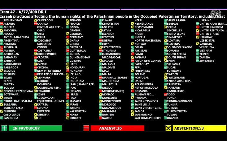En el caso de la opinión consultiva de la CIJ de La Haya del mes de julio del 2024, nuestros estimables lectores se recordarán que Costa Rica votó en contra de esta solicitud en el mes de diciembre del 2022 cuando se adoptó en el seno de Naciones Unidas, siendo el único en América Latina con Guatemala, tal y como se puede observar en el registro de voto.