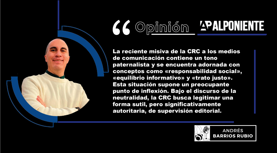 La tentativa de la CRC de imponer directrices editoriales constituye un retroceso democrático. Se trata de regresar a una época en la que la censura era implementada desde los despachos oficiales mediante llamadas telefónicas o directivas administrativas. En la actualidad, el control puede adoptar una apariencia de buenas intenciones, pero su propósito fundamental permanece inalterado: silenciar, intimidar y someter. Cuando un medio duda antes de publicar, cuando una redacción teme ser sancionada por su tono o su enfoque, la censura ya ha ganado. El silencio no es una posición neutral, sino que conlleva una complicidad implícita. Cualquier profesional de la información, medio de comunicación o ciudadano que decida mantenerse en silencio ante esta amenaza contribuye al debilitamiento de la libertad que ha supuesto un arduo esfuerzo construir. Las democracias no sucumben de manera abrupta; se erosionan gradualmente, mediante acciones como la mencionada, a través de comunicados que aparentemente son intrascendentes, pero que menoscaban la independencia informativa.