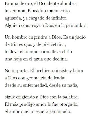 Mencioné, de paso, de manera burda, sin ahondar en los detalles, un poema tardío de Borges sobre Baruch Spinoza que resume la única salvación posible para el escéptico: inventar un dios personal, un sentido imaginario. Me habría gustado declamar el poema. No pude. No lo tenía en la memoria. Con los años la memoria se manda sola, caprichosa, registra solo lo que quiere. Vale la pena, en todo caso, traer a cuento el poema de Borges.
