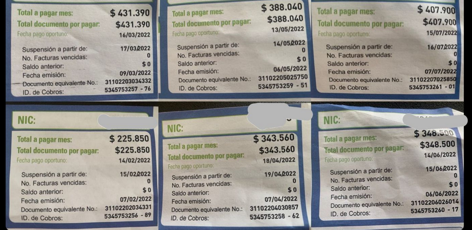 Uno de los casos que recibí es de un hogar estrato 3 que pasaron de pagar $225.850 en el mes de febrero, a ir pagando un incremento mensual en el valor de los servicios que ya llegó a facturar, según el cobro de Afinia, un poco menos de $500.000. Otra denuncia fue la de un hogar en el que habitan 2 personas que aseguran permanecer por fuera de la vivienda alrededor de 10 horas por cuestiones laborales, quienes evidenciaron un aumento que consideran excesivo, puesto que pasaron de cancelar $249.250 en el mes de julio a tener que pagar $513.870 para el mes de agosto.