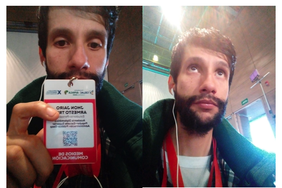 Esa muy bonita y hermosa credencial de acreditación que ven en las fotos,para el foro del sábado 21 y la otra para poder acceder al evento del día viernes 20 que llegué me costaron más de una rabia y 20 minutos parado en la entrada del centro de Convenciones. Si por milagro no logro ver mi credencial sobre la mesa no puedo entrar. Ninguna lista aparecía mi nombre, no me encontraban registrado como medio, sino que anexé los documentos que acreditan tanto que soy estudiante activo de la ESAP y la Academia Popular Diplomática -iniciativa formativa de la Cancillería para involucrar en los procesos de selección de la Carrera Diplomática y Consular a jóvenes estudiantes y profesionales de las regiones más apartadas del país, de las zonas urbanas de clase media y baja de las capitales y del sur de Bogotá-.